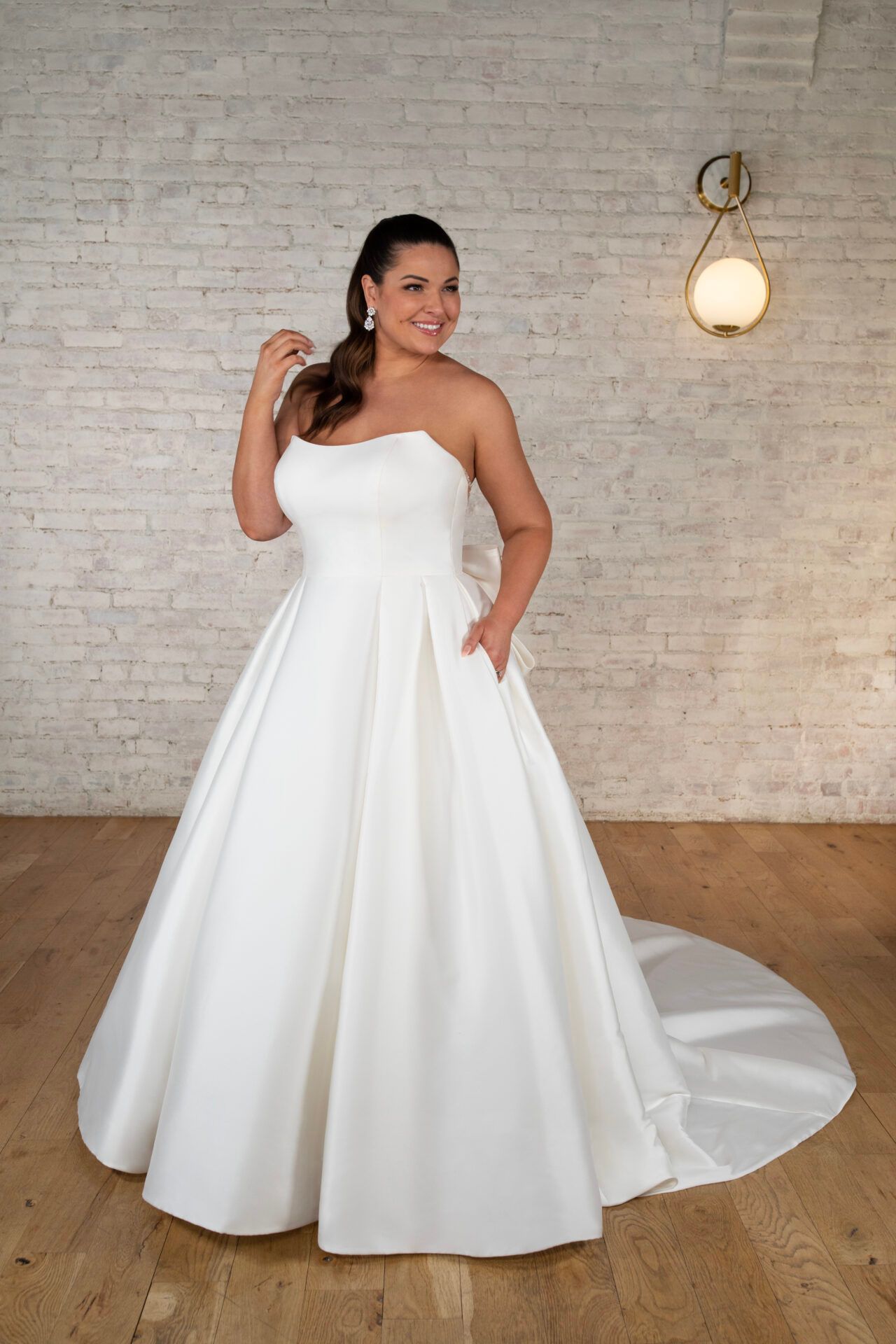 Strapless gown in a Plain Princess style for a minimalist, bold look. (Plus size available)